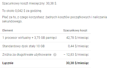 Cennik: https://cloud.google.com/pricing/?hl=pl