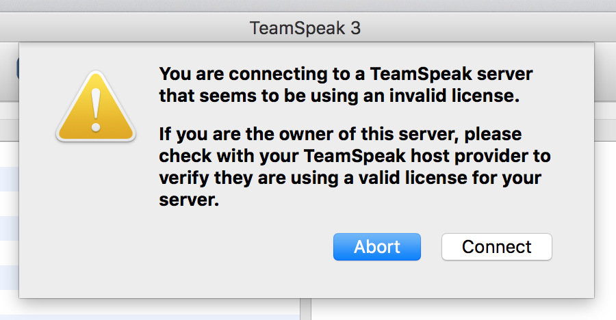 You are connecting to a TeamSpeak server that seems to be using an invalid license.