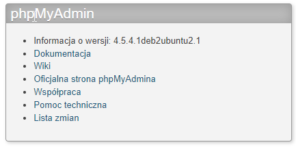 Następnie sprawdzamy wersje phpmyadmin(Po zalogowaniu wystarczy “zjechać” na dół strony)