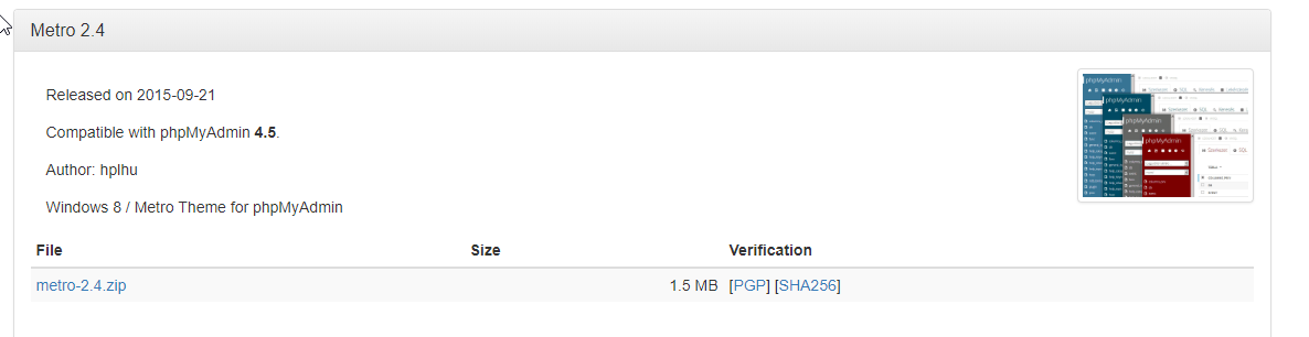 Jeśli już wiemy jaką wersję posiadamy to pora wybrać motyw, wchodzimy na https://www.phpmyadmin.net/themes/ i wybieramy wersję phpmyadmin.