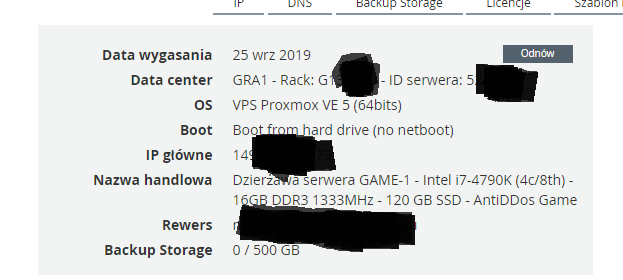 Posiadam na sprzedaż serwer dedykowany z serii GAME model GAME-1(https://www.soyoustart.com/pl/serwery-game/).