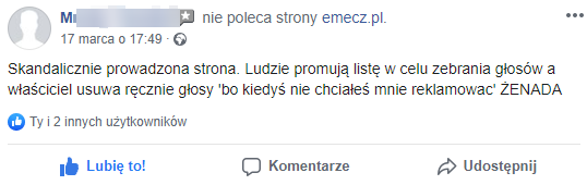 Niewygodne komentarze oczywiście usuwamy i pozostawiamy bez komentarza :) [Mam też screena tej opinii sprzed usunięcia jej jeżeli ktoś jest zainteresowany]