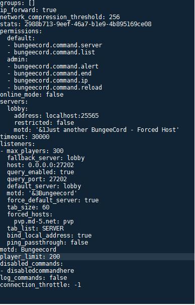 Jest to sekcja gdzie możesz sobie ustawić maksymalną ilość graczy na BungeeCord, opcja -1 daje Tobie nieskończoną ilośc graczy online.