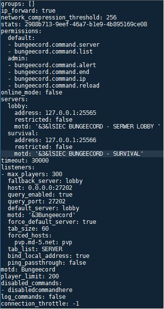 Następnie zapisujemy plik restartujemy serwer Bungeecord.