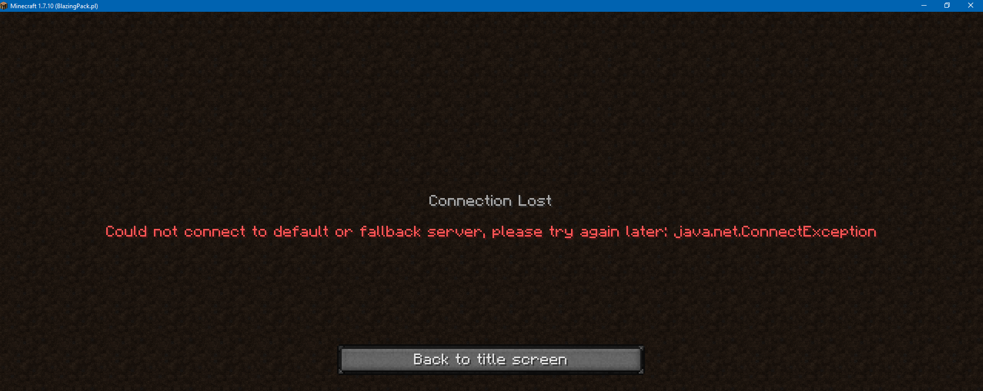 Bungee nie może połączyć się z domyślnym serwerem.