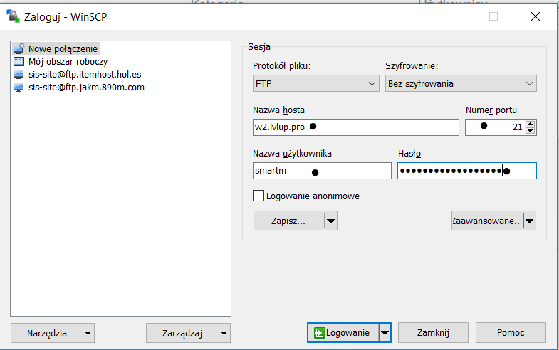 Jeśli masz wiele serwerów, którymi chcesz się zajmować, możesz użyć funkcji zapisz, która zapamięta twoje dane do logowania na serwer.