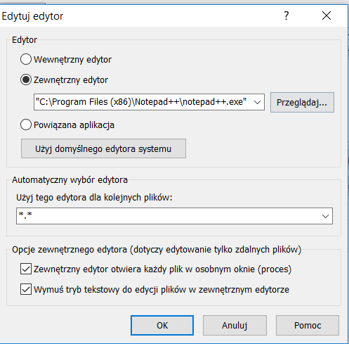 Domyślnie WinSCP ma swój edytor tekstu jednakże mamy szansę to zmienić.