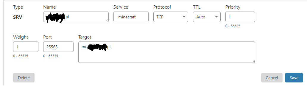 Jeśli chcesz używać tej chmurki, musisz podłączyć serwer Minecraft przez rekord SRV.