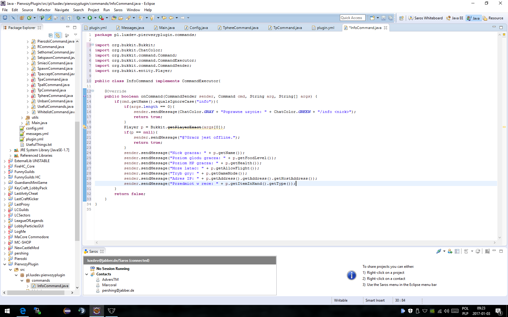 Nie zapomnij o importach, oraz dodaj też tą komende w plugin.yml tak jak w ostatnim poradniku.