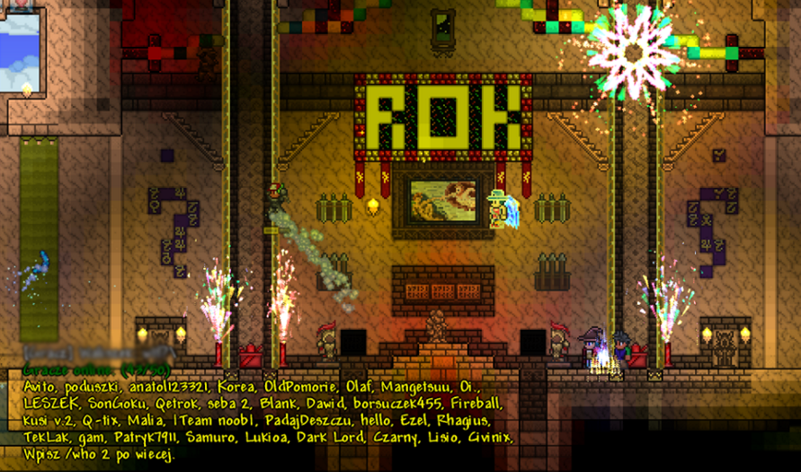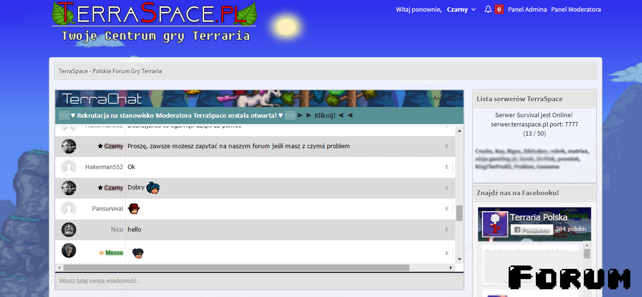 Co udało nam się zrobić? Od stycznia tego roku notujemy wysoki przyrost nowych osób w naszej społeczności. Na dzień dzisiejszy posiadamy zgraną, stałą Administrację, 384 polubień na Facebooku, 361 Użytkowników na forum (założone w grudniu ubiegłego roku) oraz średnio 20-50 Graczy na serwerze w zależności od dnia. Dosyć niedawno wprowadziliśmy system redakcyjny gry Terraria, który zresza osoby piszące najrozmaitsze artykuły na temat gry. Ponadto, mamy nawiązaną współpracę z kilkoma osobami nagrywającymi filmy w serwisie Youtube oraz wydawnictwem książkowym.