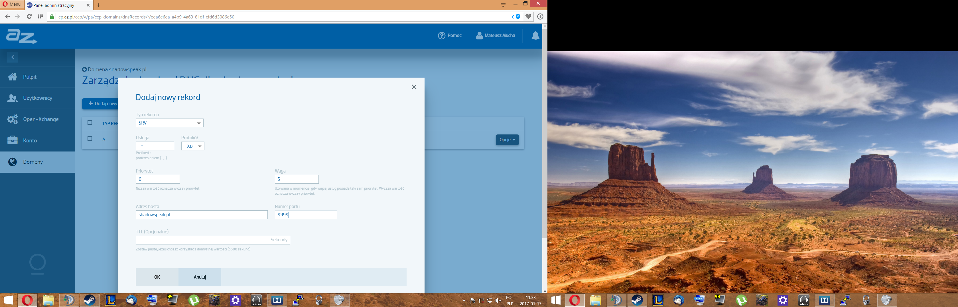 Dla tej domeny przypisałem także rekord A ale nie mogę sobie poradzić z rekordem SRV.