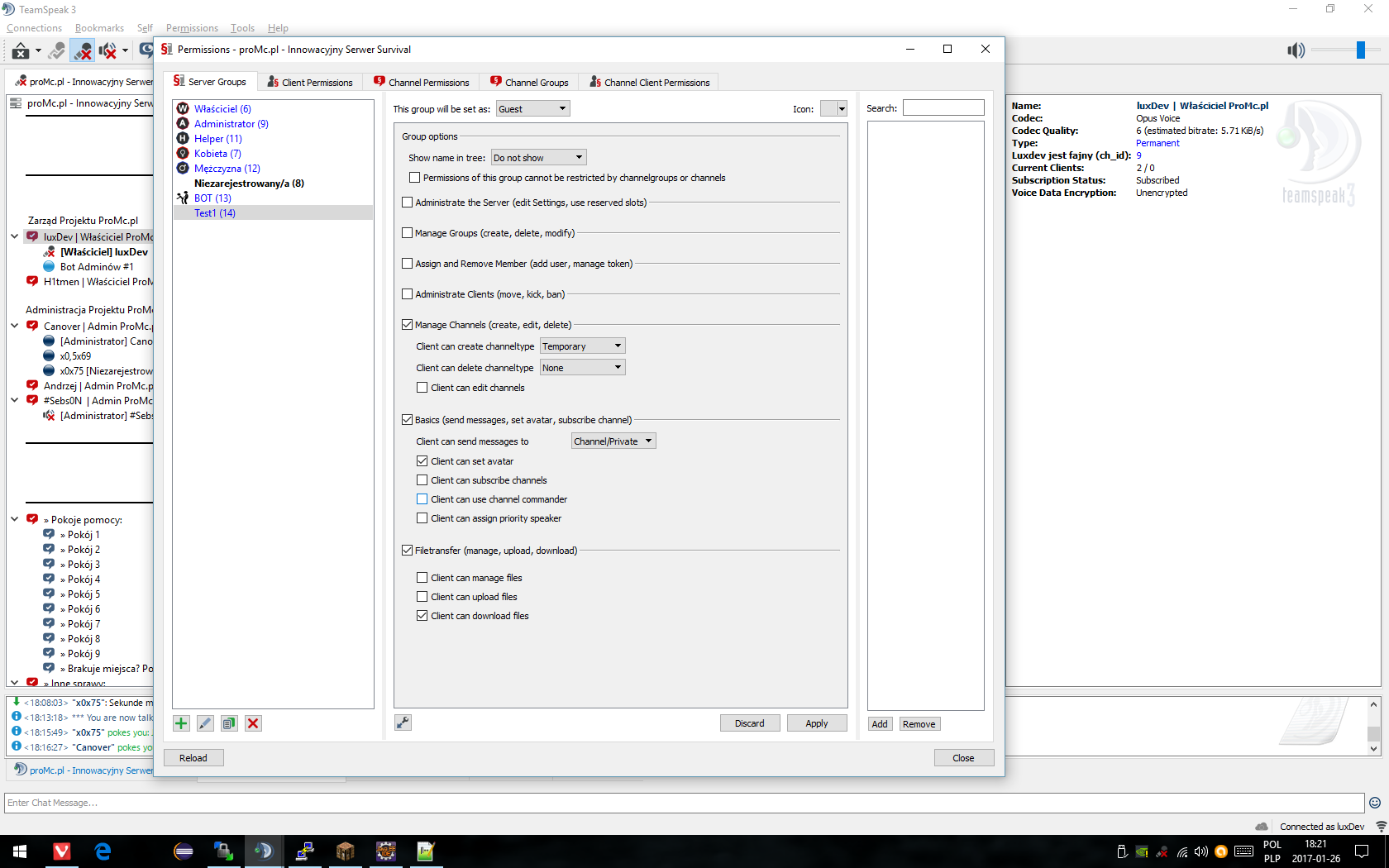 Siedzimy sobie na kanale Jak ktoś nowy wejdzie to nikogo nie ma na serwie ? Domyślam się że to jakaś permisja tylko jaka