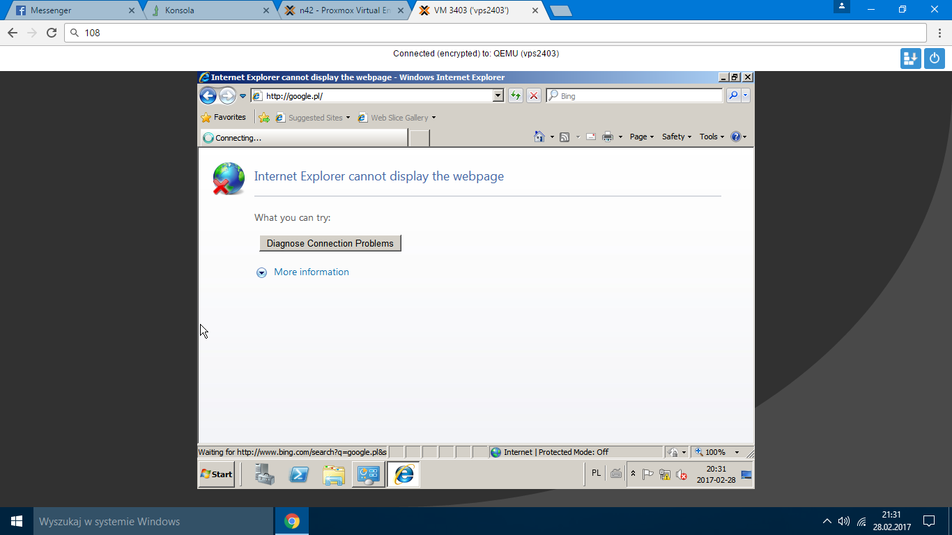 Zrobiłem tak i pokazuje że jest połączenie z internetem ale nie mogę wejść na żadną stronę :confused:
