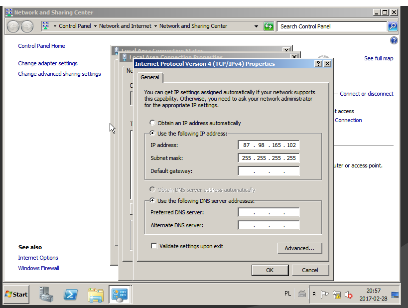 nie będzie chciało zapisać ustawień to wpisz chwilowo 255.255.0.0