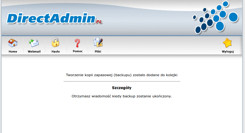 Dostaniemy maila gdy proces się zakończy wtedy możemy uznać że mamy kopię zapasową.