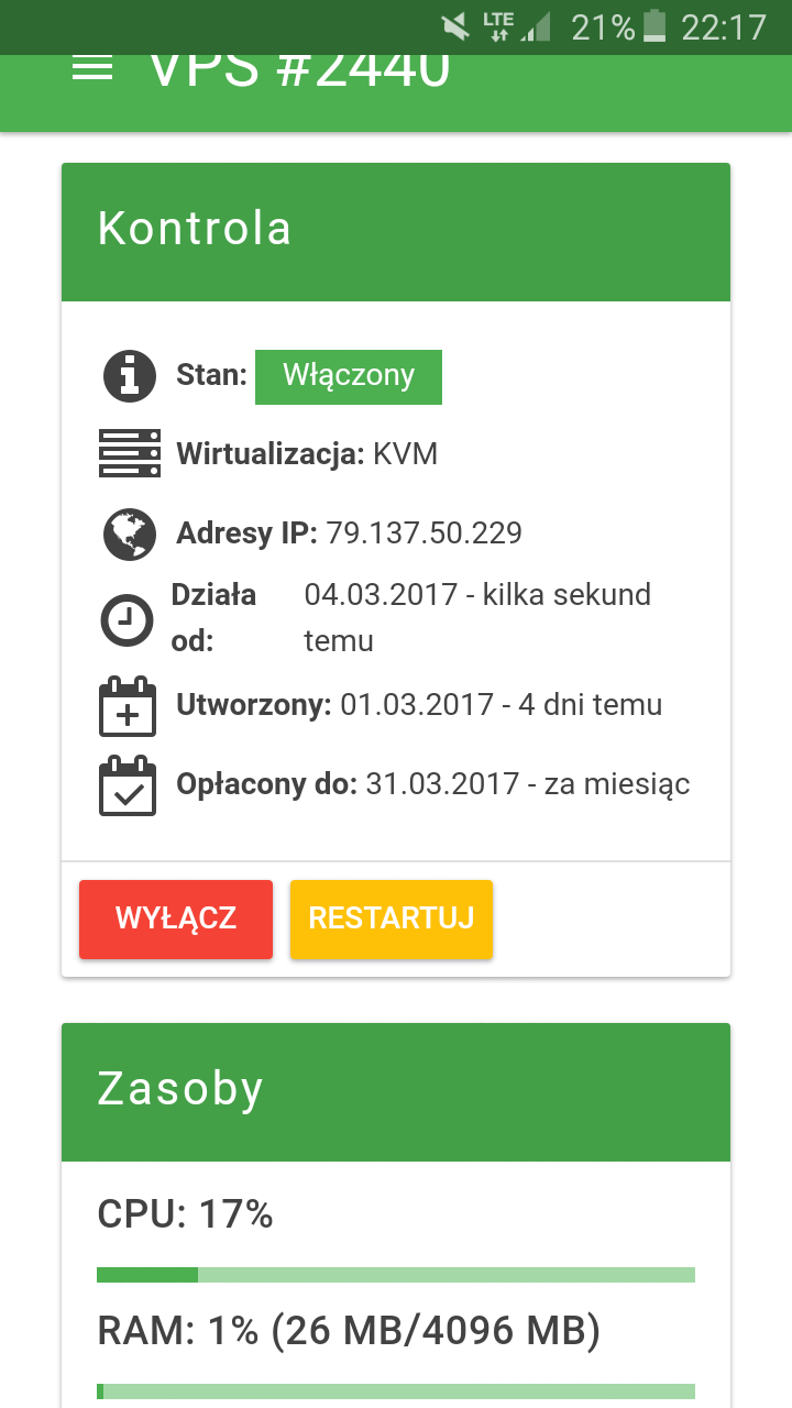 ostatnio zauważyłem pewien błąd. Po zakupie VPSa licznik “Opłacony do” pokazuje cały czas “za miesiąc”, lecz upłynęło już parę dni.