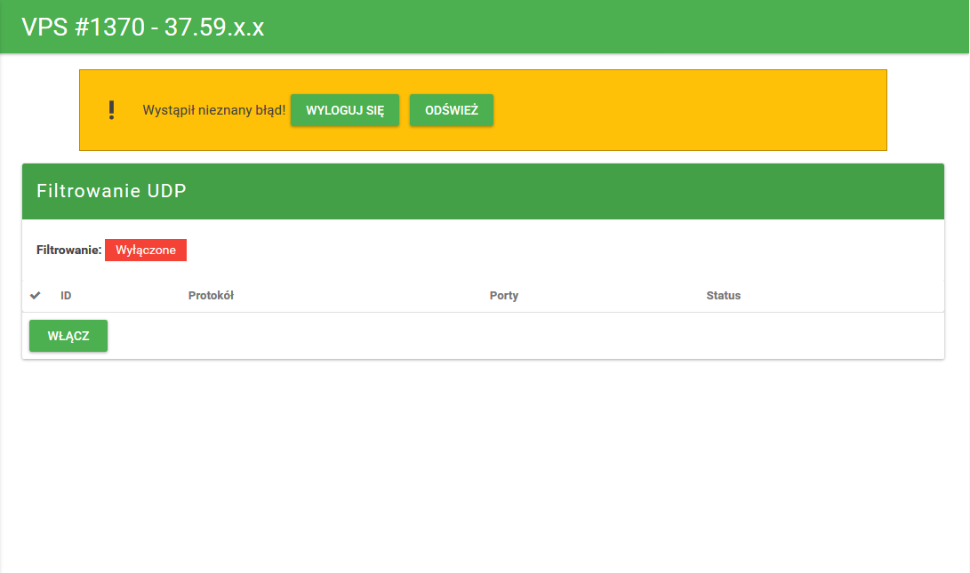 Sprawdziłem raport błędu z tamtego momentu i wygląda na to że twój VPS akurat ma adres IP który leży w bloku.