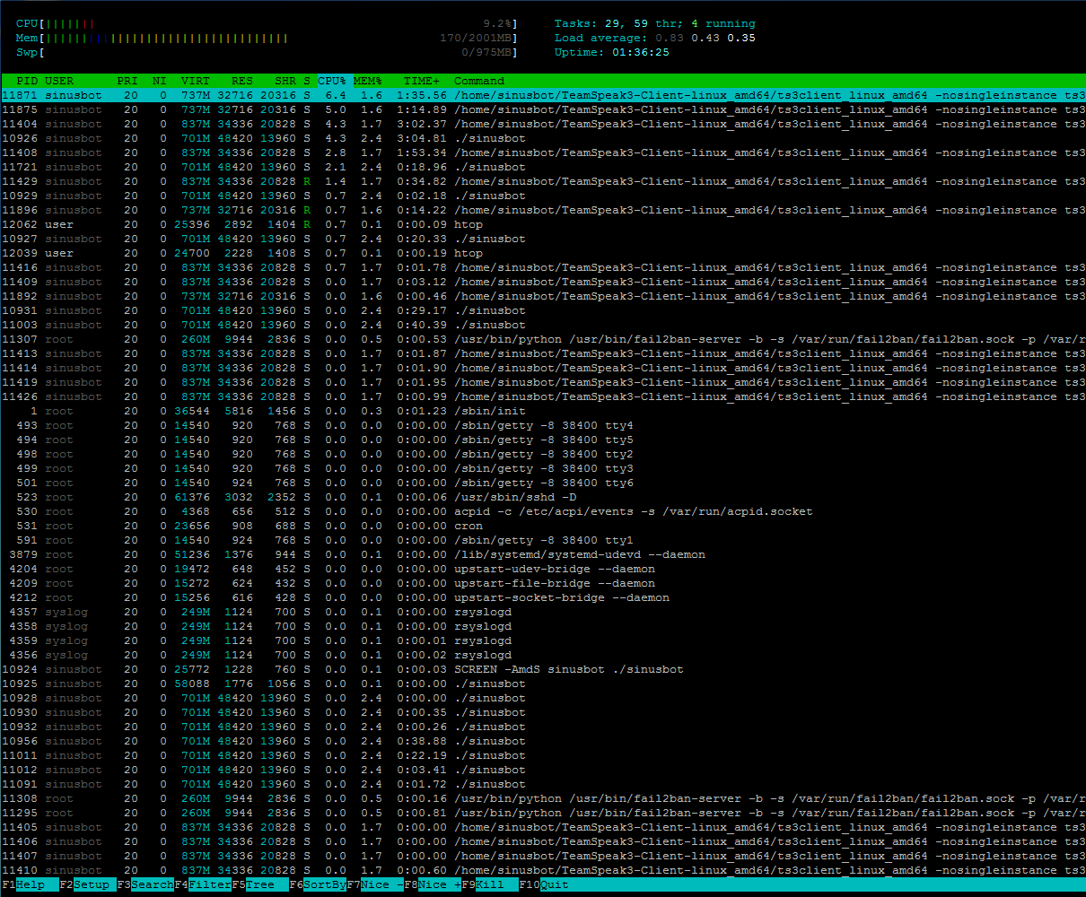Dodatkowo, bo ja używam samego top, czemu jest tam tyle ./sinusbot ?