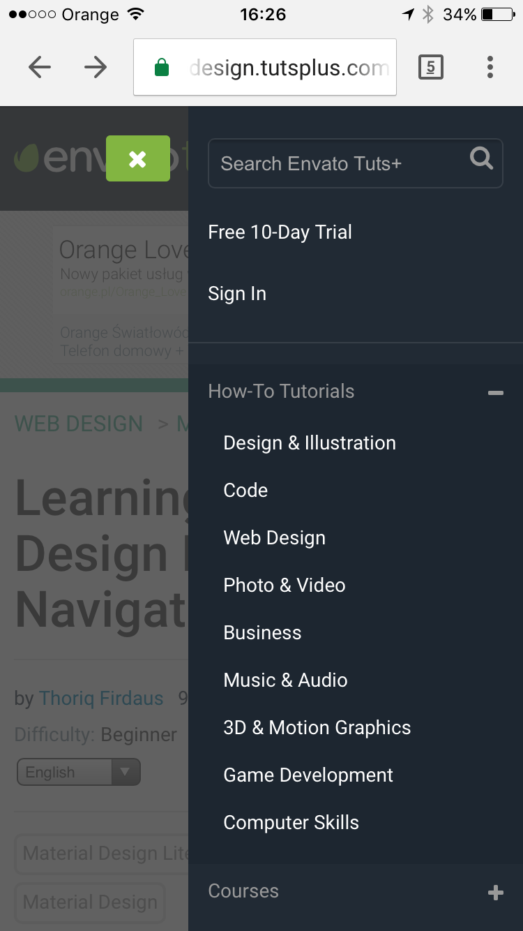 Tak. Na wersji mobilnej. Wg mnie dużo lepiej by było korzystać gdyby po przesunięciu palca z lewej strony na prawą po ekranie wysunęło się menu. I potem ukrywanie w odwrotną stronę. I tak dla uściślenia taka ikonka z 3 paskami aby znajdowała się po prawej - górnej stronie menu.