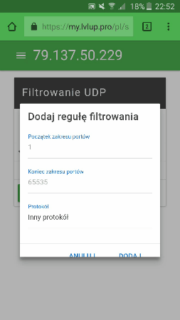 podczas przeglądania strony z regułami UDP coś mnie natchnęło i zobaczyłem mały błąd. Okno dodawania reguły jest ucinane. Nie będę tego dokładnie opisywał, a przedstawię w formie GIFa :) Z góry przepraszam za słabą jakość, ale jest to widoczne :slight_smile: