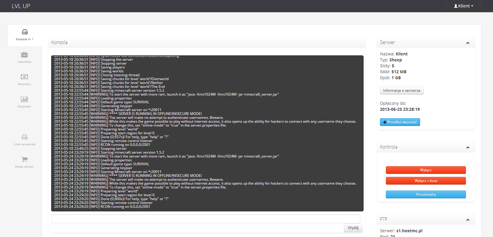 Pierwsze konto w lvlup należało do mojego kolegi, na jego koncie zajmowałem się serwerem minecraft. Było to na początku 2015. Potem kolejny kolega z kolejnym kontem, a potem temat ucichł. W połowie 2016 wróciłem do lvlup kupując natomiast VPSy na własnym koncie, było z 6 różnych vpsów, teraz mam 1 VZ i 1 KVM.