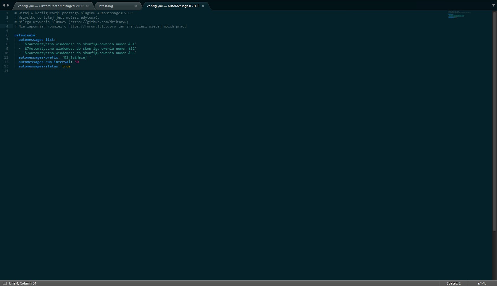 Z kolejnym dniem przychodzę do was z kolejnym prostym pluginem na wasze serwery, tym razem będzie to nic innego jak AutoMessages czyli wiadomości na czacie co jakiś czas; ustawione w configu.