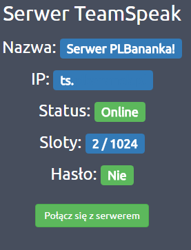 - informacje na temat serwera TS (poprzez REST API od Planet TeamSpeak)