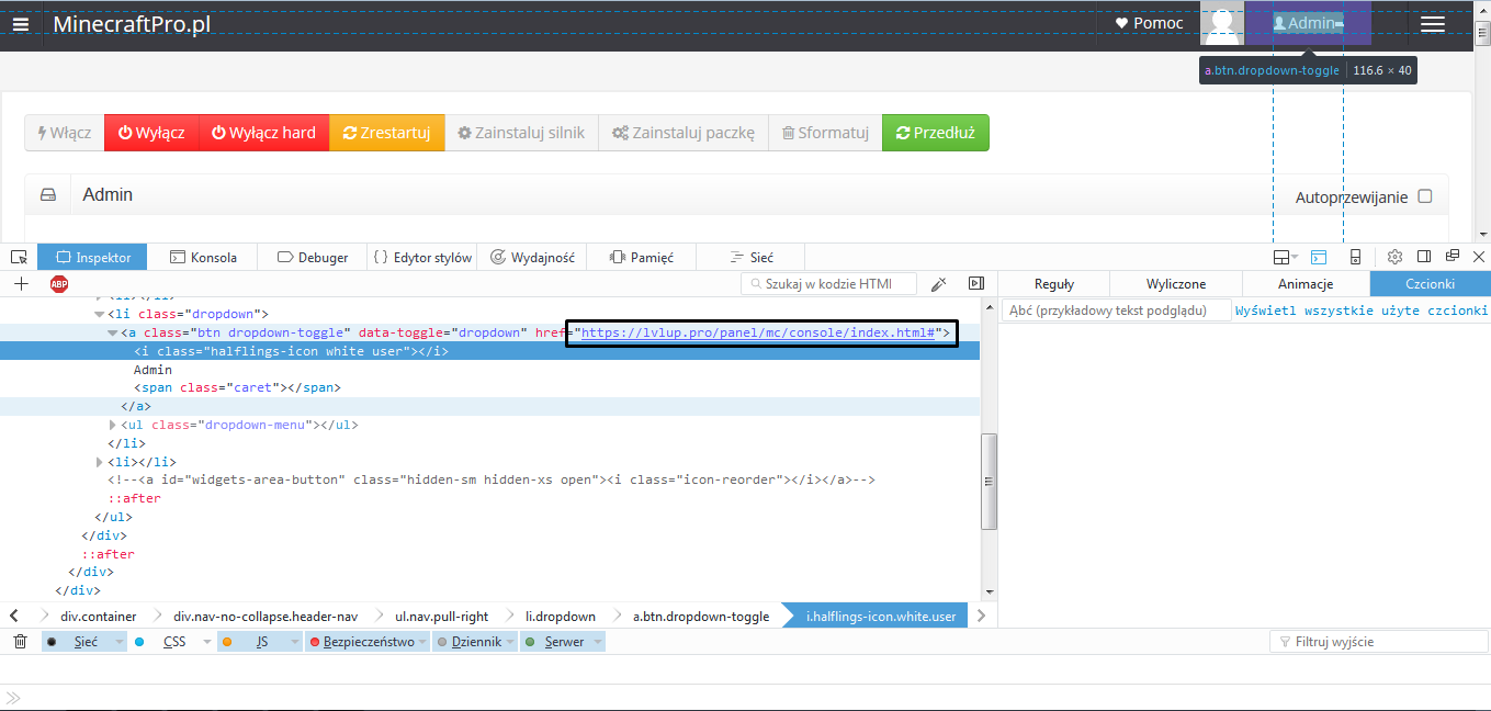 Panel klienta – przykładowy panel do zarządzania usługami. Nie jest on udostępniony Abonentowi na czas świadczenia usług
