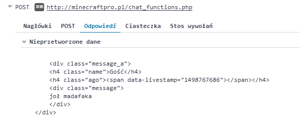 Już tłumacze - na stronie jest bardzo nieumiejętnie zaciemniony skrypt js/chat.js, który co chwila wykonuje zapytanie post “action=getmessage” do chat_functions.php