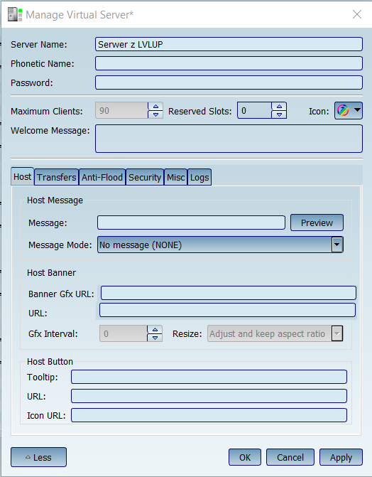 Edycja Serwera TS3 - “Edit Virtual Server”