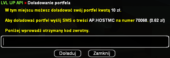 Witam. Przedstawiam Państwu wykonane przeze mnie połączenie przykładowego sklepu na serwerze SA:MP z API SMS LVL UP.