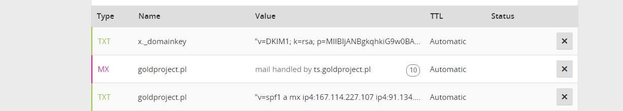 Po dodaniu rekordu MX, poczta już prawie działa ;) Musisz dodać jeden rekord TXT ;)
