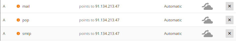 - muszą one kierować na IP hostingu WWW - niestety, aby one działały, musisz je wyłączyć z “obrotu” pomiędzy Cloudflare, a hostingiem WWW.