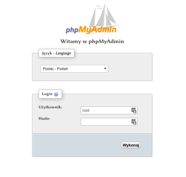 - zrób nowego użytkownika w phpMyAdmin i w lubryce Host