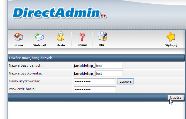 Zalecamy aby każda baza danych miała innego użytkownika i hasło.