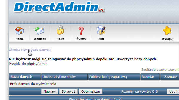 Klikamy Utwórz nową bazę danych