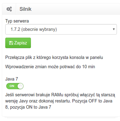 Jeśli zauważysz taką sytuację to przełącz po prostu javę na 7 w panelu i dokonaj restartu serwera.