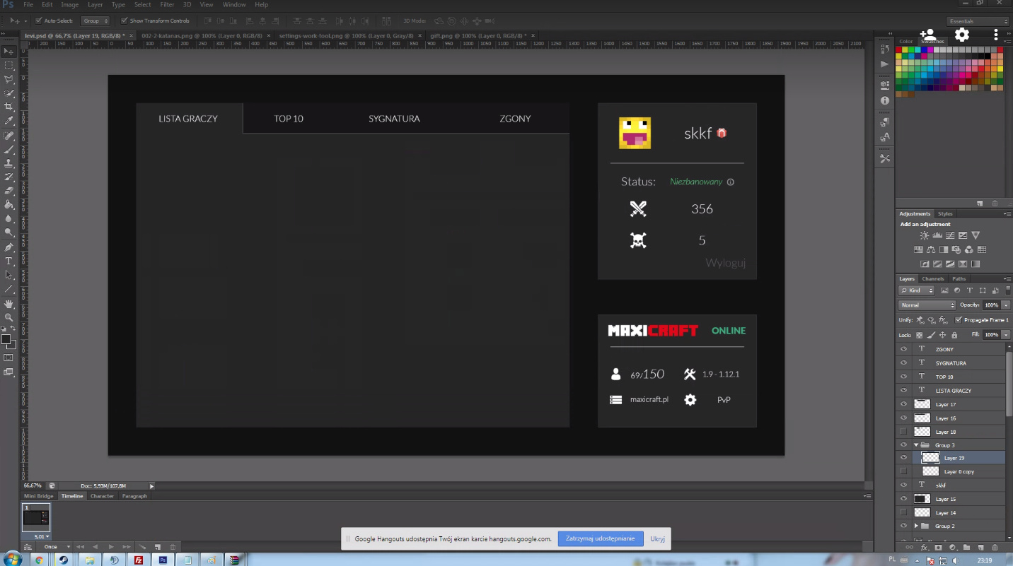 Oczywiście strona główna nie zawiera wszystkiego co końcowa wersja, bo będą na niej statystyki gracza i zarządzanie profilem.