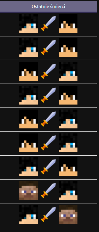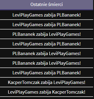 Co do tego wyświetlenia zabójstw mógłbyś zrobić coś takiego, że jest głowa zabójcy i trupa, a🚺między nimi jest jakiś miecz skierowany w stronę trupa, po najechaniu na głowy wyświetlały by się Nicki.