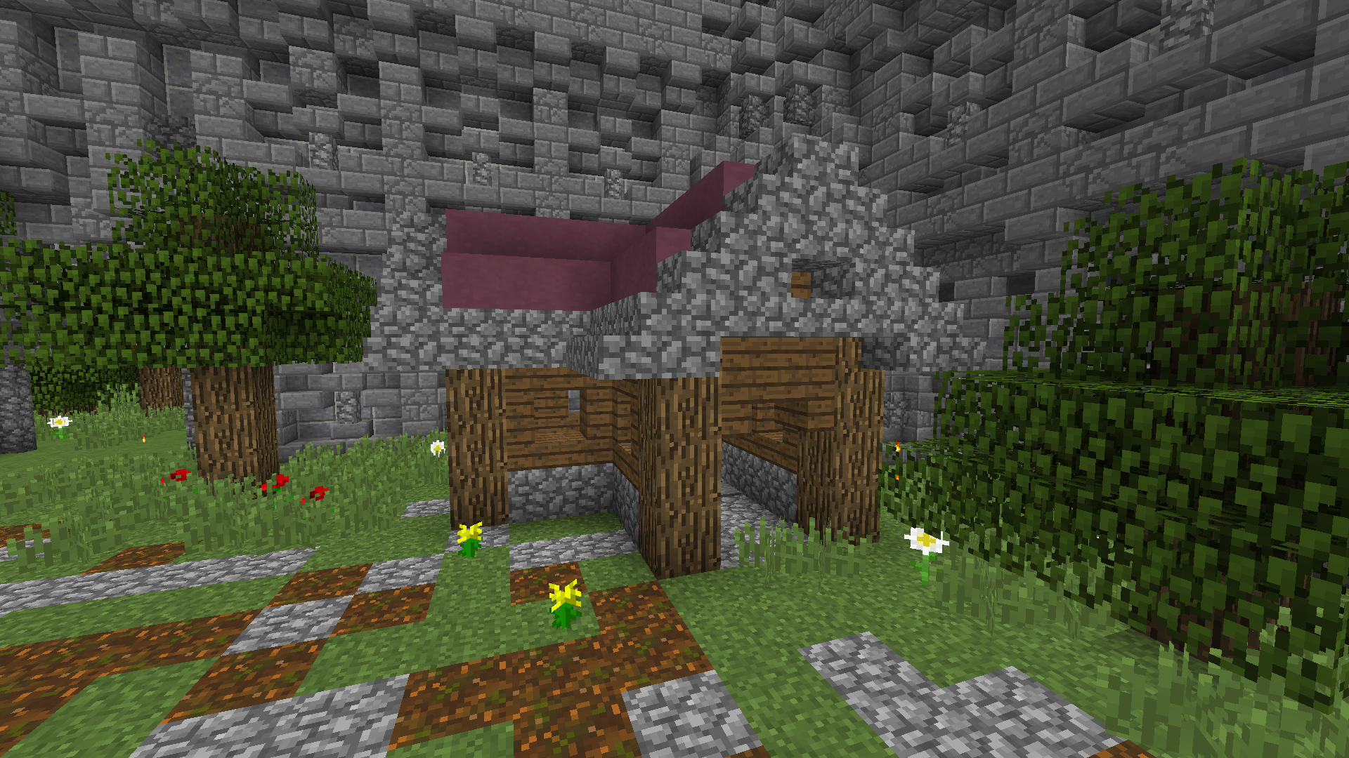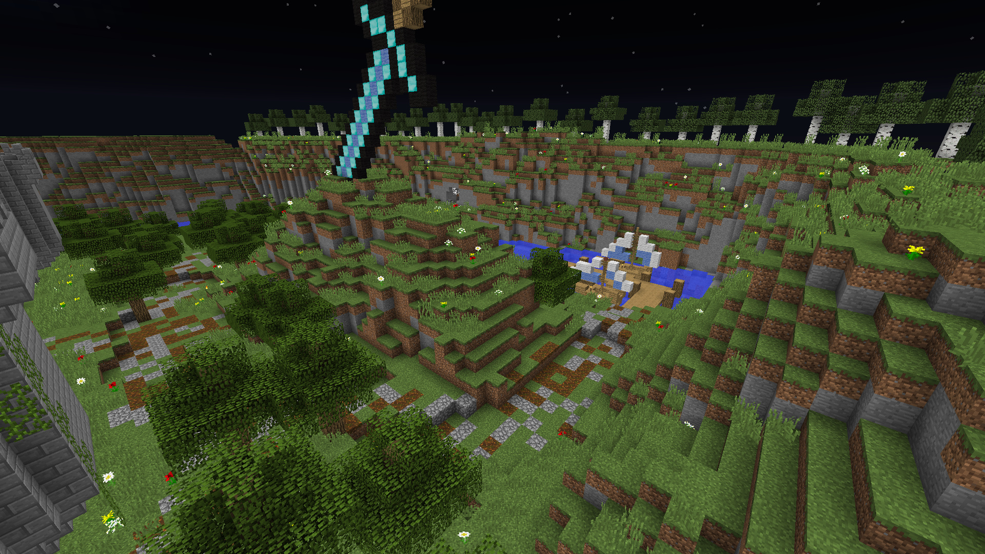 i teraz tak: na punty respanu (bo gracze tu będą tepani) wymyśliłem coś takiego: wiadomo, to będzie się zmnieniać na każdym biomie, ale zamysł jest taki. Rzecz w tym, że znając ludzi będą kampić pod tym, dlatego innym pomysłem jest zrobienie takiego czegoś, że punkty spawnu byłby niewidoczne, gdzieś tam na drodze (około 5 na biom, bo jak widzicie mapa jest podzielona na biomy), a po teleportacji gracz byłby nietykalny przez 10 sekund lub do momentu aż kogoś uderzy (eliminując tych co po zrespieniu kampiliby w miejscu swojego respa).