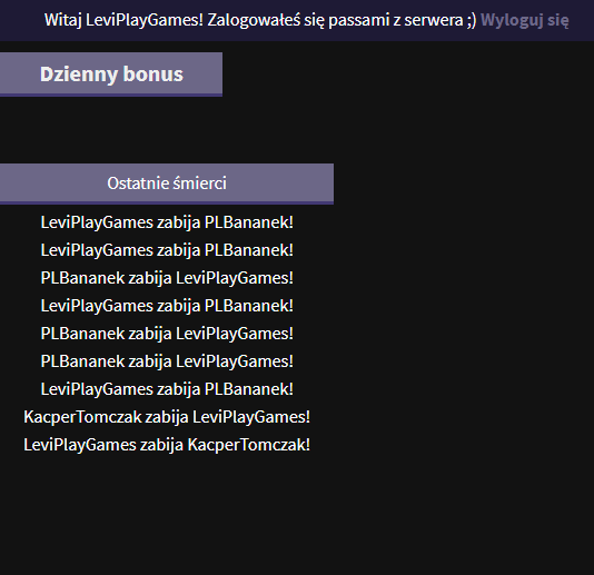 //Dzięki połączeniu JS i PHP za pomocą AJAX’a śmierci pobierają się teraz dynamicznie i odświeżają co 3 sekundy bez potrzeby manualnego odświeżenia :blush: