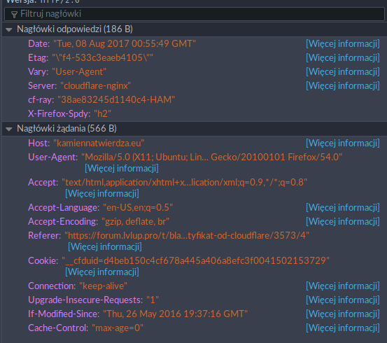 Coś jest nie tak i w headerze z proxy CloudFlare nie jest przekazywana domena / web server jej nie łapie…