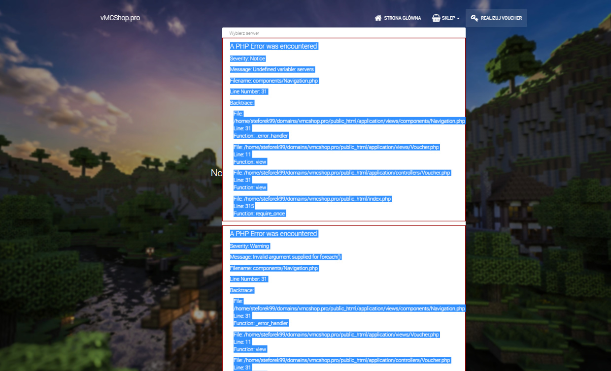 Znalazłem błąd: po przejściu do “Realizuj voucher” i rozwinięciu “Sklep” widzimy taki oto widok: