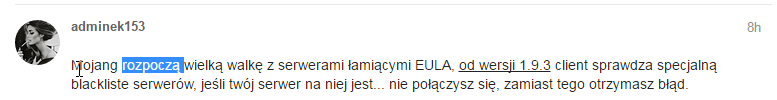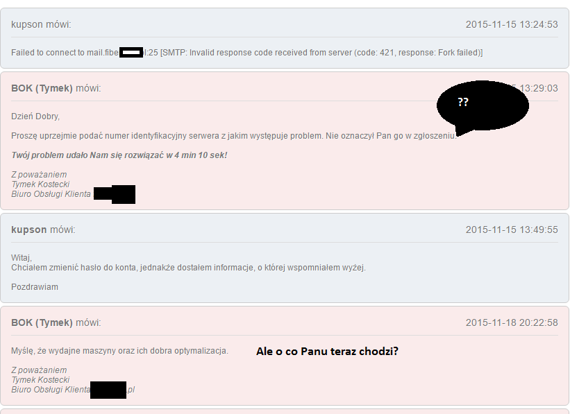 Ale jak już udostępniasz coś to udostępniaj prawdziwe, powyższa sytuacja nigdy nie miała miejsca a takie coś można bardzo łatwo zrobić za pomocą zbadaj element. Ponadto użytkownik “kupson” pisze zgłosznia do BOKu cytując pana Z.Stonogę i wklejając jego wypowiedzi powodując tym samym spam oraz pisze o błędach serwerów (WWW i minecraft) a sam nie posiada żadnej wykupionej usługi. Z góry widać, że coś tu jest nie tak i konto zostało utworzone tylko po to aby “potrollować” BOK.