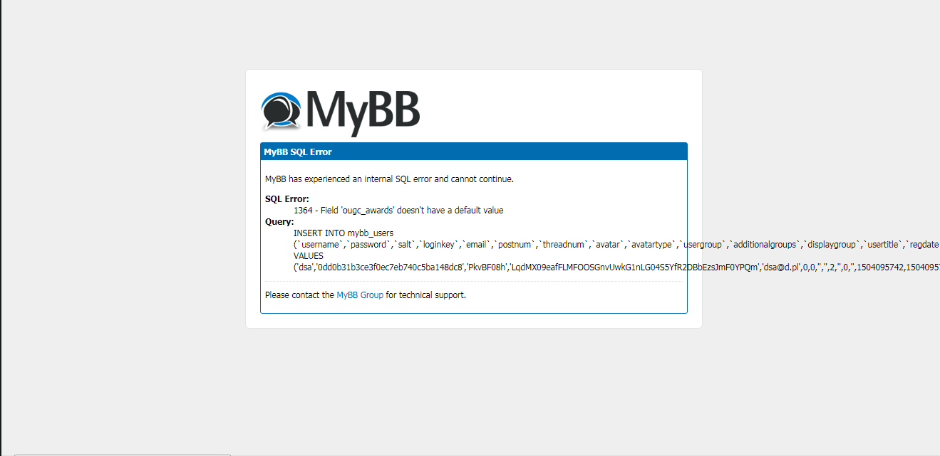 mam pewien problem z MyBB. Przy próbie rejestracji pojawia się to: