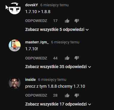 A no tak, omijam z daleka izi ha ce i tego typu serwery. Ale czy nie prawdą jest że tego typu serwery na przestarzałych wersjach są coraz mniej popularne? Ja dość ryzykowalem tworząc serwer na 1.12.2 i obecnie rekord graczy to około 65, przy zwykłym promowaniu na pewnej stronie. Jak widać wystarczy mieć tylko chęci, więc tlumaczenie że na “1.12 nikt nie gra bo wszyscy wolą 1.7/1.8” jest warte co najwyżej wyśmiania. Pozdrawiam.