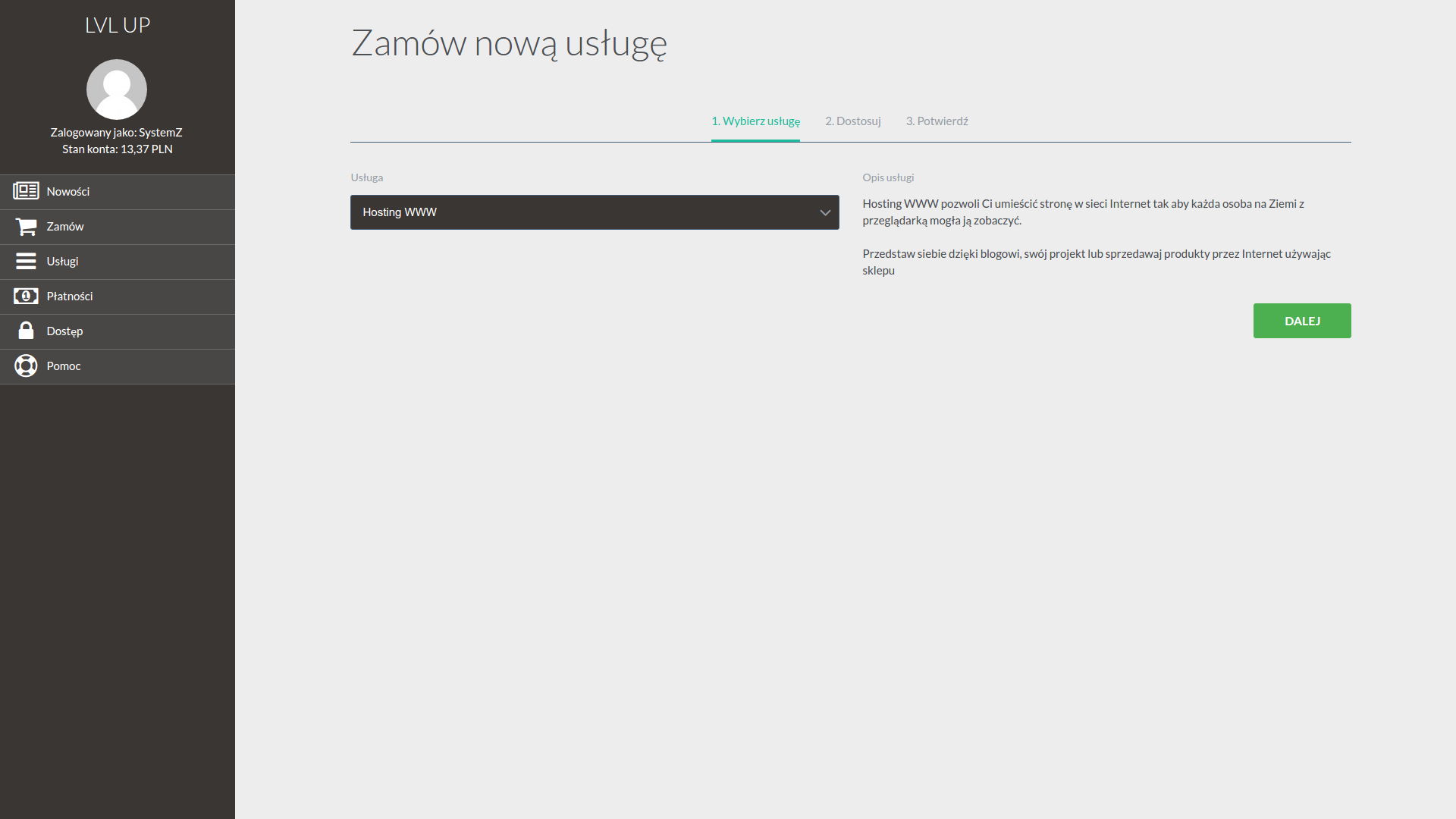 Również podczepiam się pod sugestię @Nieznajomy11, fajnie by było kiedy panel informowałby kiedy jest możliwość zakupu nowej usługi kiedy aktualnie jest nie dostępna.