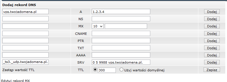 ts3.udp.ts.twojadomena.pl. | 86400 IN SRV 0 5 9988 vps.twojadomena.pl.