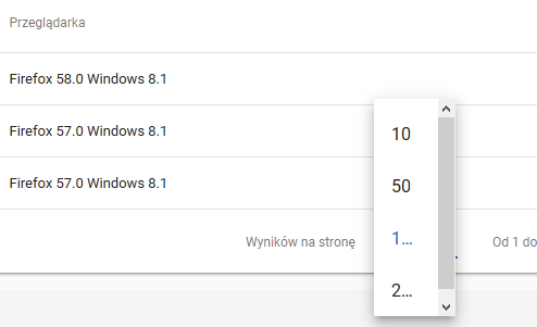 Rozwijając tabelkę “Wyników na stronie” w zakładce profilu natrafiłem na liczby z wielokropkiem, a nie na po prostu 100 czy 200.