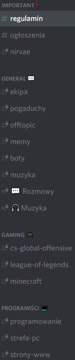 • Kanały na serwerze zostały przyodziane w odpowiednie opisy.